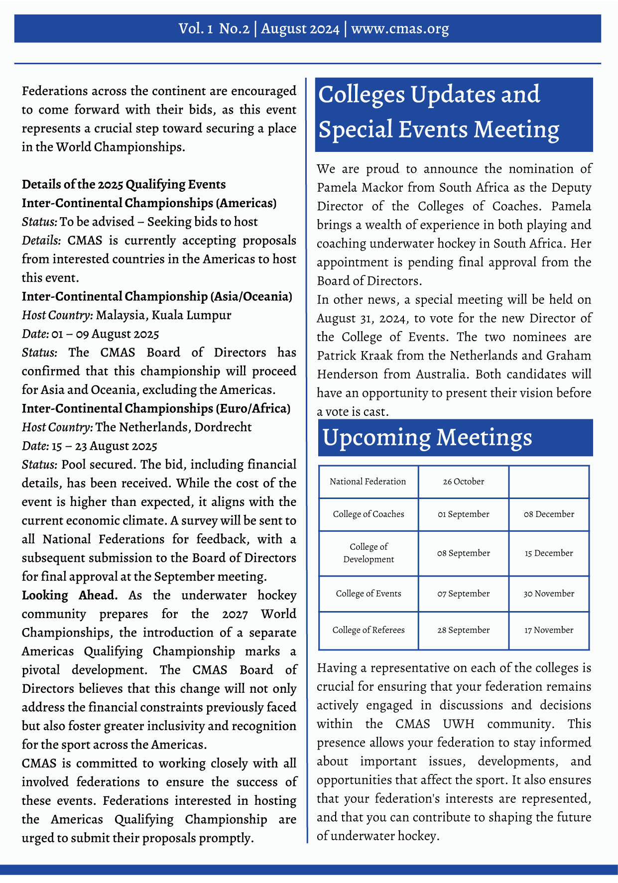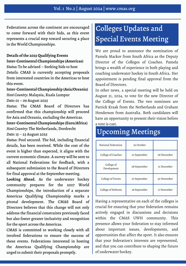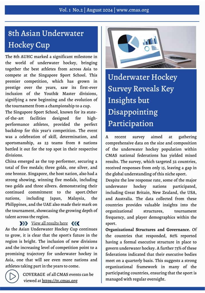 The CMAS memorandum states "The Organising Committee will be set up within two weeks and will carry out all the activities in order to make the WC not only a success, but a joyful and memorable gathering of the best CMAS athletes in this discipline."